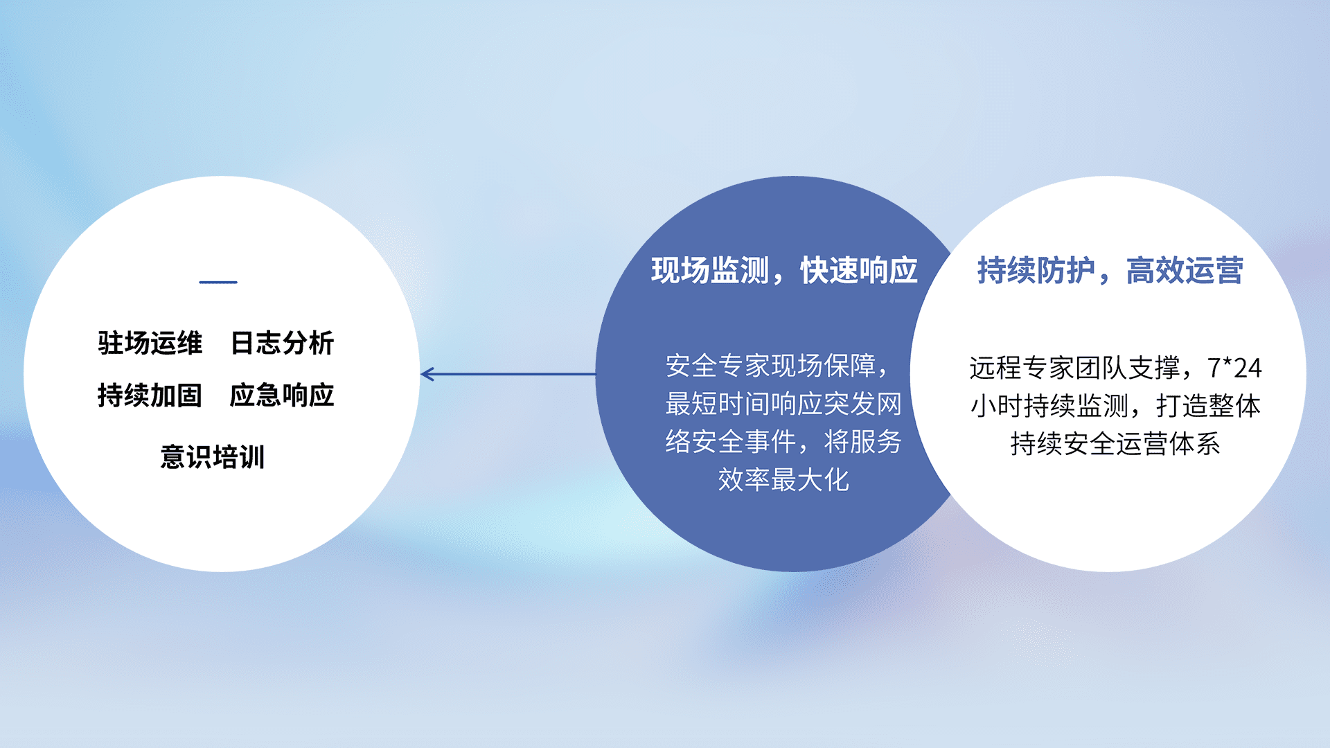 7X24小时持续监测安全事件,保持安全策略有效性,降低资产脆弱性风险,,,精准拦截黑客攻击,,,,减少被黑客利用的机会,,,第一时间遏制,,降低损失。。