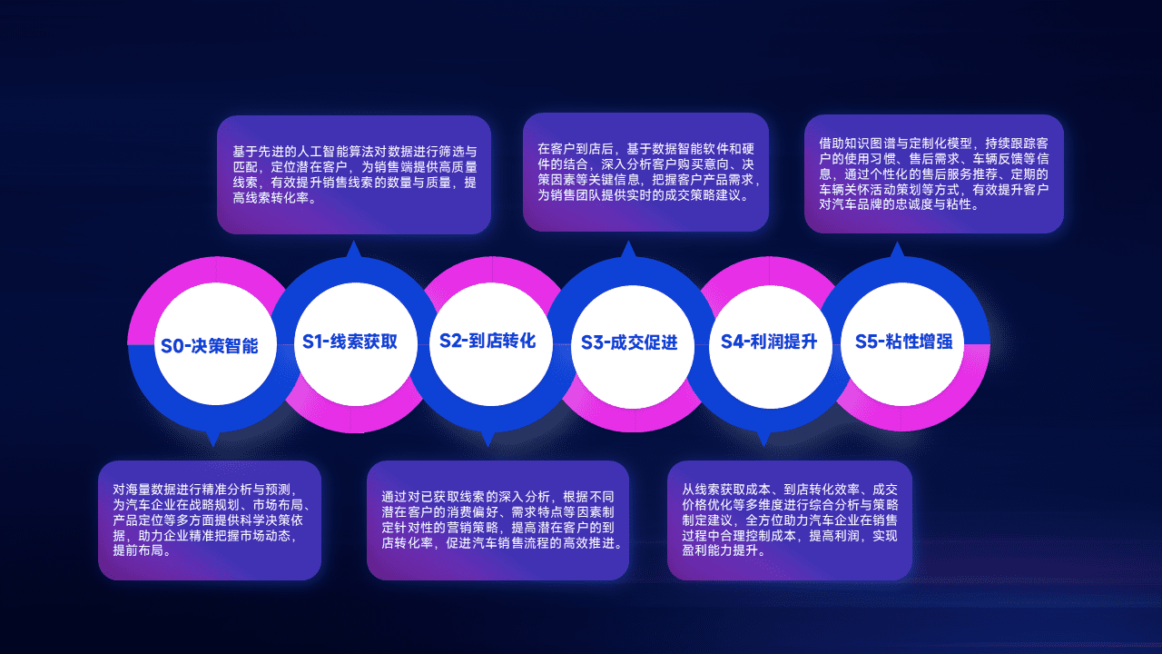 通过拓宽潜在客户来源、、优化线索分配并提高到店转化率,,,以增强销售效率。。。。同时,,,,利用线索数据不断优化分析模型,,,有效提升转化率,,,扩大营销影响力。。。。